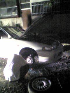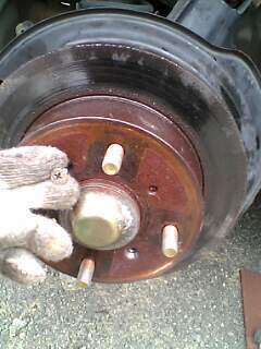 ![]() 何度あきらめたことでしょう。 インパクトドライバーのビットが壊れるくらい叩きました。 数時間の格闘の末、りのくんがついに取ってくれました。 何を?って。 固着したローターのネジです。(^^; ぶったたきすぎたせいで、ネジにもう一つ山が出来てました。 その後、ローターにCRE556を使いながら さらにハンマーで数十発・・・・固着したローターは とれずに、ギブアップ。 ディーラーに持ち込むことに(T_T) 昨日ぶちまけてしまったブレーキフルード。 ディーラーに行くことも出来ないので、とりあえず 緊急作業でブレーキフルード入れ&エア抜きを行いました 初めての作業だったので、かなり手間取りました。 |
