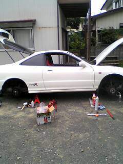 ![]() 昨日の失敗のリカバリーもしないまま、次の作業に・・・ ローターの交換です。 まずは、手早くジャッキアップ&馬がけ |