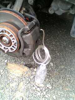 ![]() ブレーキキャリパーを上げたままになっていたのを忘れて 思わずブレーキを踏んでしまいました・・・ フロントのブレーキピストンがころんと・・・ ブレーキフルードも全部漏れてしまいました。 ブレーキを直すつもりが、壊しただけになってしまった・・・ |