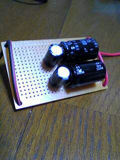 ![]() コンデンサ(2種類X2個)、ユニバーサル基盤、カラーコード、ケース。 全部込みでも1000円未満でした〜。 (ホントはヒューズが必要なんだけど買い忘れました^^;) |
