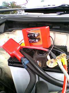 お手軽強化パーツシリーズ第2段!! 今回はコンデンサーチューンをやってみます。 ではまず、コンデンサについてのお勉強から(^^) コンデンサとは、簡単に言えば充電電池です。 蓄えられる電気の量(静電容量)は電池などと比べても 非常に小さく、充電は一瞬で完了します。 また逆に、電気を放電するときも一瞬です。 極短時間の間に、電気の充放電が行えるのが コンデンサーの特徴です。 では、いったい何に使えるの? 実はコンデンサーの充放電を行う性質が、 車のバッテリーの電気を安定させる上で役に立つのです。 バッテリーは常に同じ量の電気を出そうとしますが 常に少し弱くなったり、強くなったりしています。 そこでコンデンサをつけると、バッテリーの出力が 弱くなったときに、自分に蓄えていた分を放出して 足りない分を補ってくれます。 逆に強かったときは 自分の中に電気を溜め込んで電気を弱くしてくれるのです。 コンデンサーの効果は、「電気の強さを均一に保つ」と 言うことになります。 |