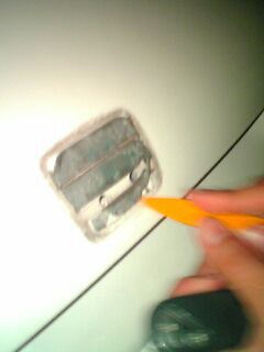 今回はエンブレムの交換です。 古くなって色あせてしまった赤いエンブレムを交換します。 交換に気がつく人はいるかな(^^; (エンブレムは、りの君が提供してくれました。感謝です) |