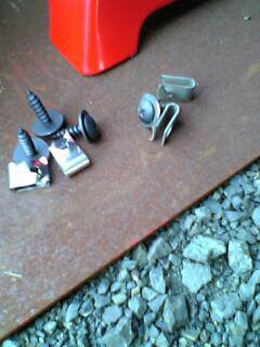 ![]() 今回は、マッドガードの構成品にネジやクリップなども 含まれてましたので、あわせて交換しました。 左の写真で見て比較すると、ネジは元々、黒い塗装が されていたみたいです(経年劣化で塗装は剥げてしまったのかな) 右の写真、車体側に取り付けるネジの台座になる樹脂パーツ。 これは、一度ネジをはずしてしまうと、もう一回締めても ゆるくなってしまいそうな予感です。 分解時には交換ですね |