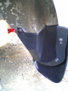 ![]() マッドガードはネジが3本ほどで留まっています。 取り付け時間、およそ1分ほどで完了です(笑) |