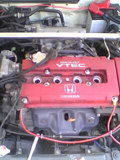 ![]() エンジン中央部についている灰色のカバーをはずします。 B18Bの場合、4本のM6ナットで留まってます。 このネジは結構くせもので、あまり強く締めるとボルトがナメりやすく また、同じボルト上にもう一つナットがついているので 下手をするとそのナットも回り出し、二つのナットがくっつき 蓋がはずれなくなったりします(ダブルナット) でも、ゆるく締めるとエンジンの振動で取れてしまうんですよ。 (それで一度、ナットを無くしました^^;) 上のナット(蓋)を外したときは、下のナット(ヘッド)を 締めなおしてから、あらためて上のナットを締めると良いです。 蓋を外したら、コードを引っこ抜いていきます。 |